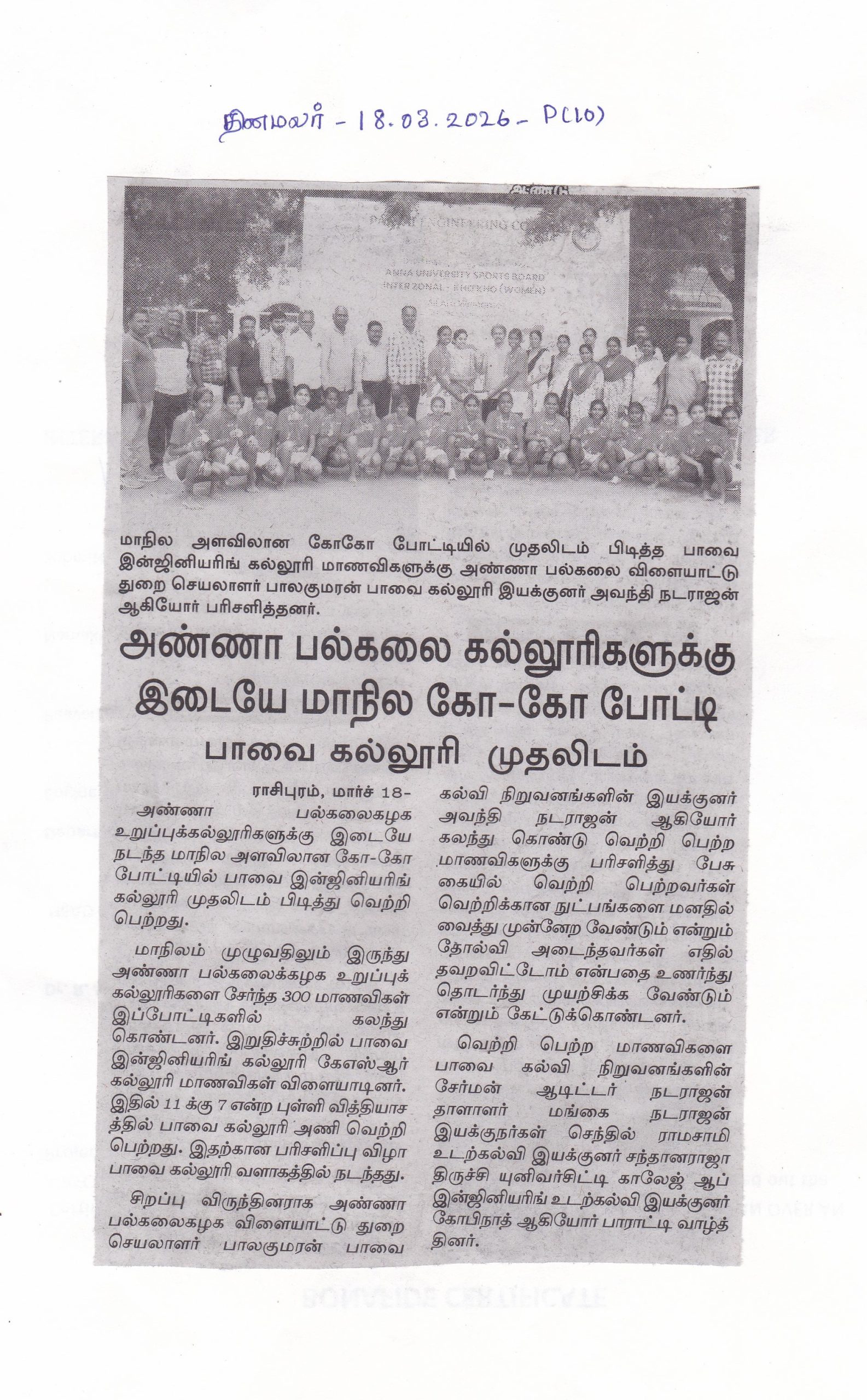 Paavai Institutions celebrated its Sports Day on 16th April 2019. Our C.A.N.V.Natarajan, Chairman, Paavai Institutions... More >>